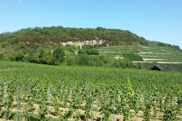 Hier am Palmberg reift vor allem Riesling heran, der aufgrund des anstehenden Muschelkalks und der ausgeprägten Südostlage eine besondere Qualität erlangt.