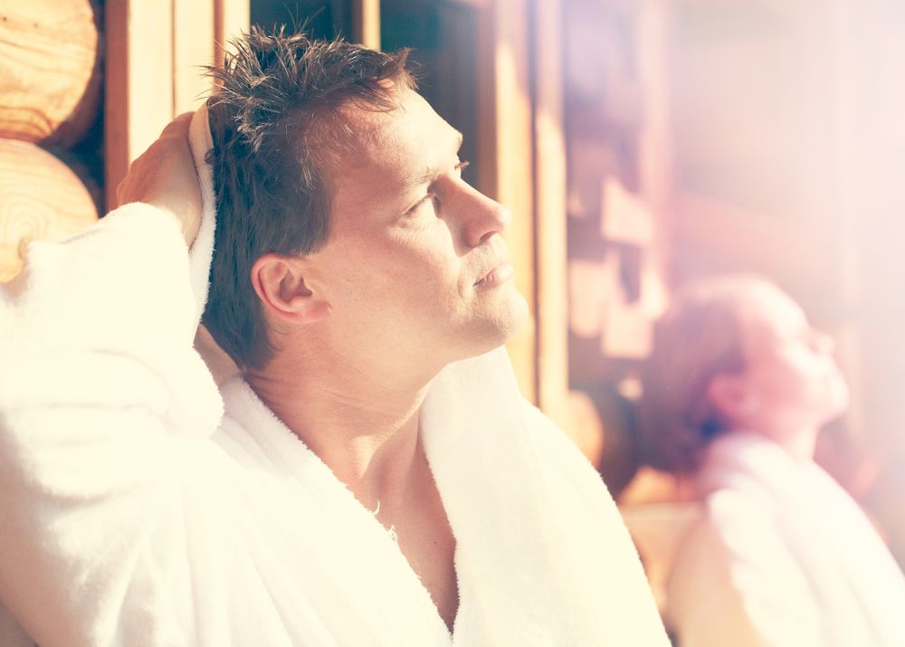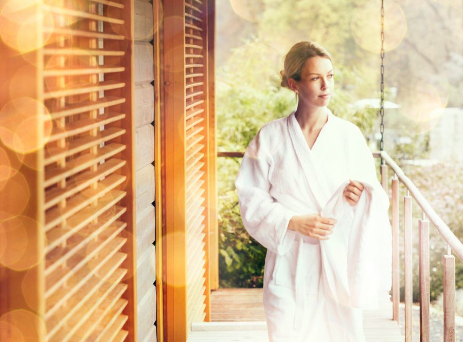 - Badeschuhe, Handtücher und Bademantel liegen im Hotelzimmer bereit