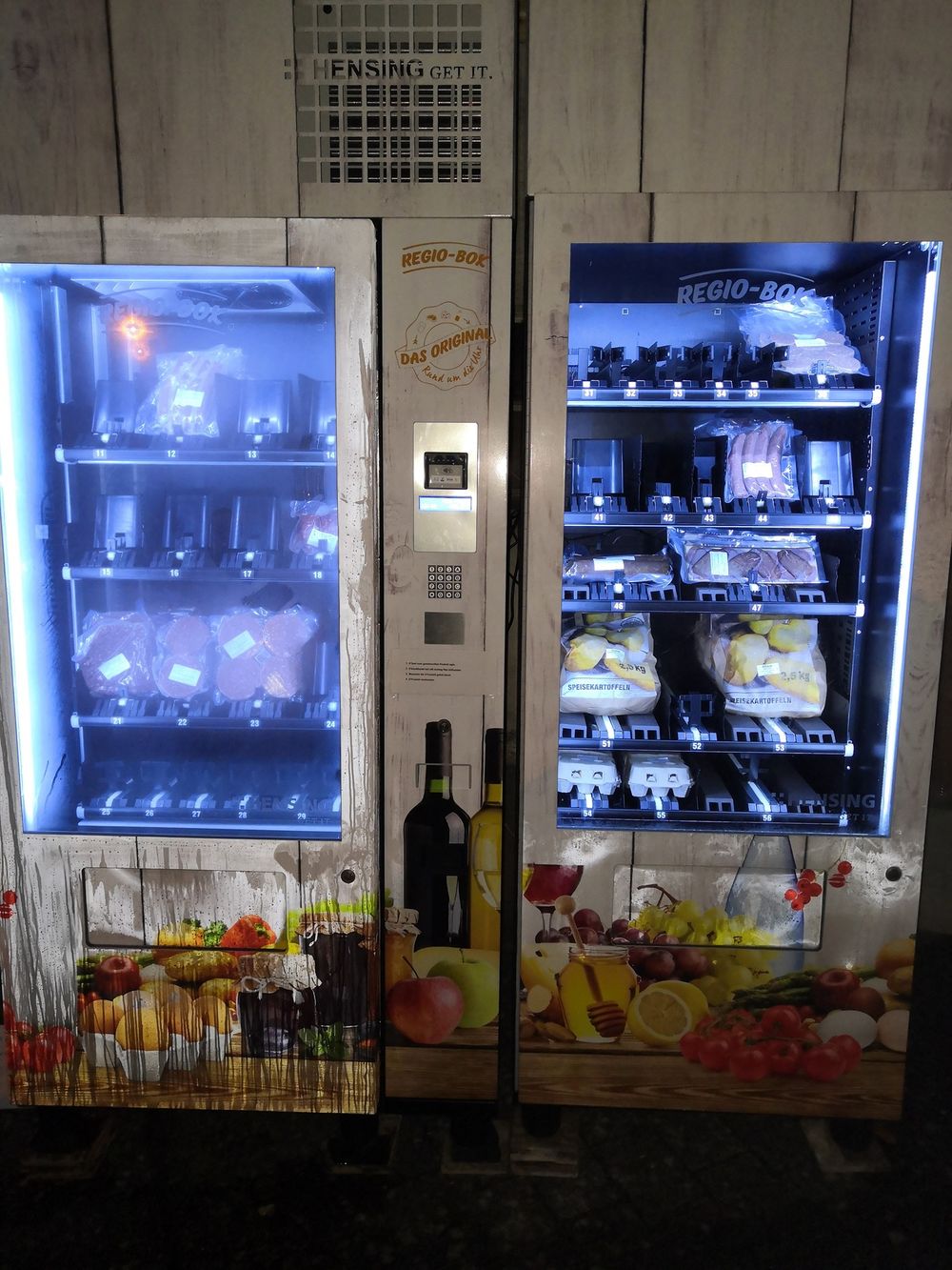 Entdecken Sie regionale Produkte wie Kartoffeln, Eier, Käse und Fleisch im Selbstbedienungsautomaten in Elvange.