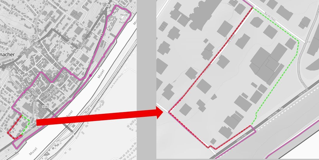 Dieser Rundwanderweg führt Sie zu Beginn ca. 800 Meter über die schöne Moselpromenade und mündet dann in eines der Wohnviertel außerhalb der Festungsmauer. Zahlreiche Sitzmöglichkeiten entlang der Promenade laden dazu ein, das rege Treiben auf und entlang der Mosel zu beobachten. Grevenmacher ist auch bekannt für seine Fußgängerzone mit großer Auswahl an Geschäften und Restaurants. Nicht zu vergessen ist das Freizeitangebot: es reicht von modernem Freibad, den Kulturhuef-Museen und dem Kino, über einen attraktiven Schmetterlingsgarten, bis hin zum imposanten Spielplatz mit Sportfeld entlang der Mosel - Groß und Klein kommen hier definitiv auf ihre Kosten!