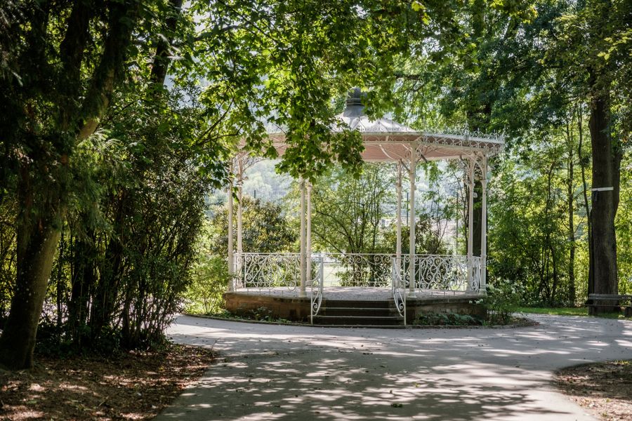 Durch den Schlosspark starten Sie den Aufstieg entlang der Syr, an einem Wasserfall vorbei ins Naturschutzgebiet Manternacher Fiels. Sie passieren die Ruinen einer alten Holzmühle. Über die Meschelslay und einige Treppenstufen hinauf gelangen Sie an einen wundervollen Aussichtspunkt. Folgen Sie dem Weg abwärts durch das Waldgebiet Schlaufels zum wilden Bachlauf der Schlammbach. Danach steigen Sie wieder auf und kehren über die Höhe des Widderberg zurück nach Mertert.