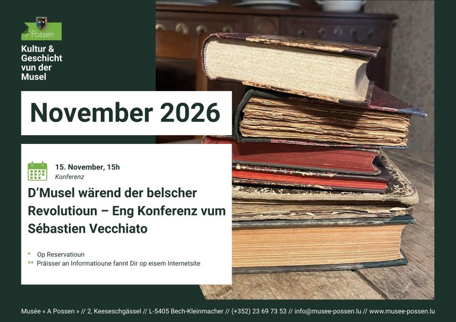 Reservation required by phone at +352 23 69 73 53 or by email at info@musee-possen.lu (limited seating available)