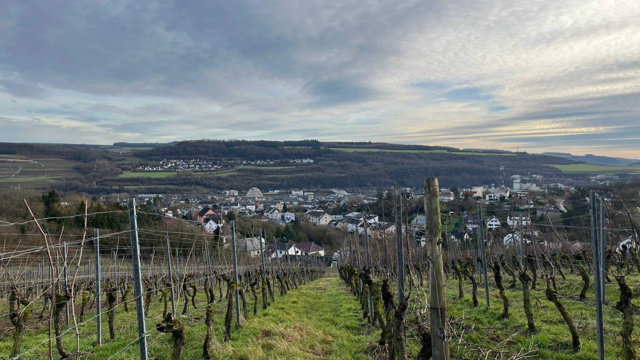Depuis la gare routière, en passant par la rue de Wecker et Grueweréck, on atteint le « Gruussfooscht » (point de vue sur la vallée de la Moselle). À travers la forêt, en partie le long d’un parcours de fitness, l’itinéraire continue en direction de la zone forestière « Haard ». Après avoir traversé la route en direction de Wecker et être passé sous le pont de l’autoroute, le tracé se poursuit vers la droite dans la forêt. À la sortie de la forêt, après avoir traversé l’autoroute A1, on rejoint, à travers les vignobles, le quartier résidentiel de la rue Boland, d’où l’on retourne ensuite vers le centre du village.