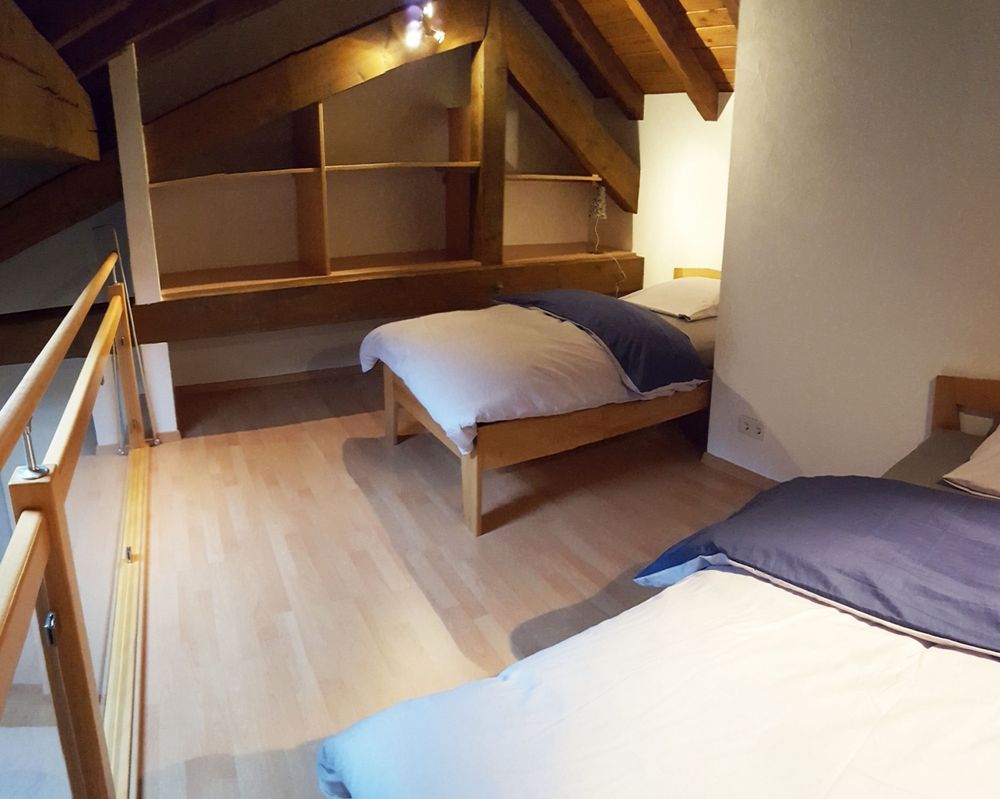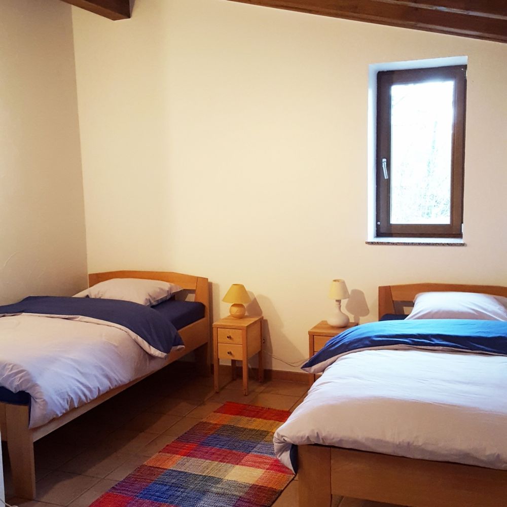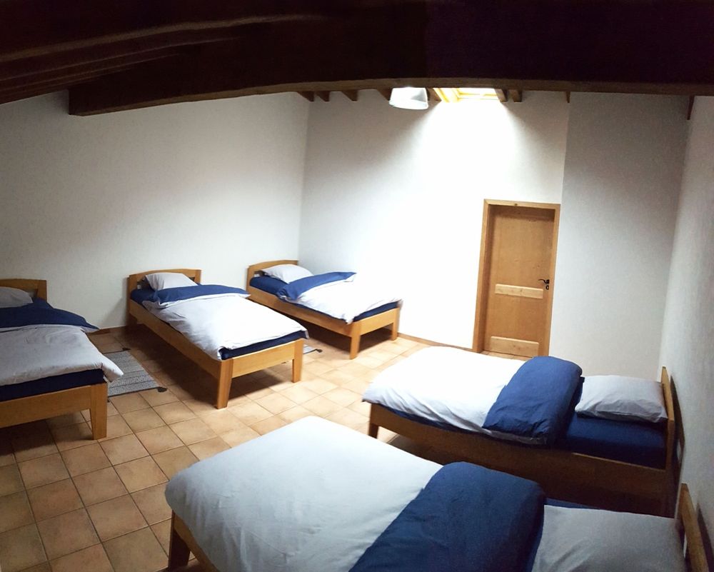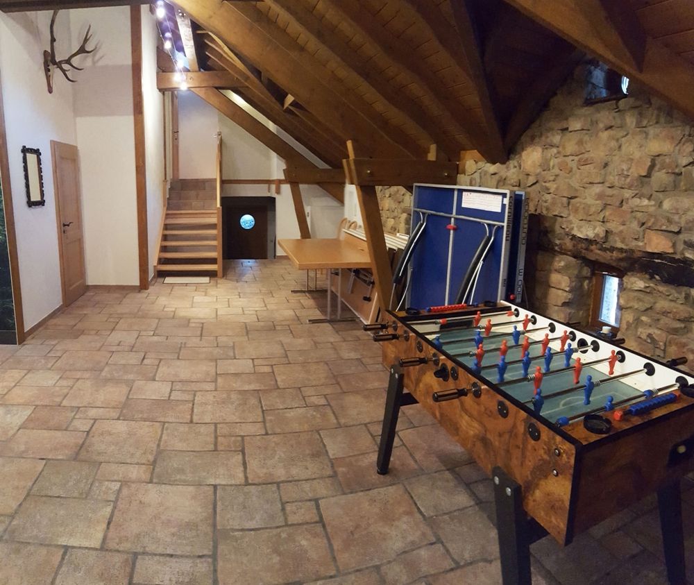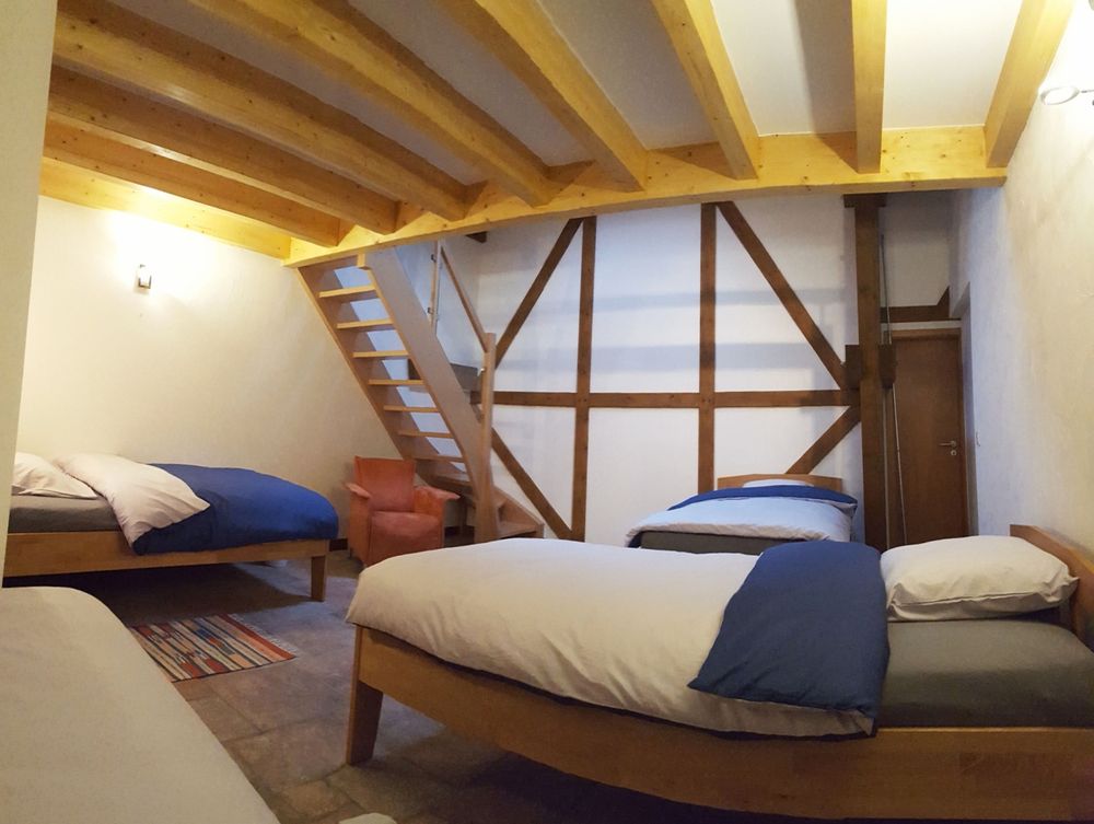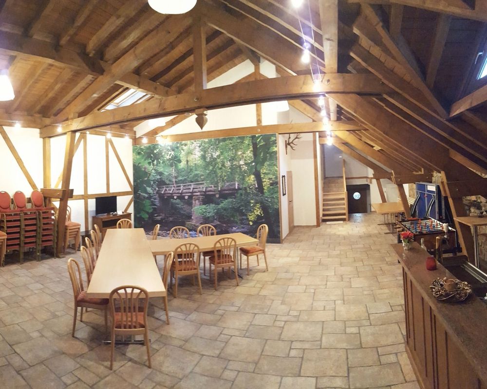 Spend your holidays in the group accommodation "op der Steekemillen". Located in a former barn, this cozy accommodation offers our guests a special holiday experience. Here you can organize family reunions, parties, weekend seminars or workshops. The spacious accommodation comprises a large living and lounge area, 4 bedrooms, a professional kitchen and 2 bathrooms (2 showers, 4 toilets, 2 urinals) and can accommodate up to 13 guests. The "Steekemillen" is located in the middle of the nature reserve "Manternacher Fiels". The ideal starting point for hiking and cycling in the beautiful Mosel region. The cities of Trier and Luxembourg (UNESCO World Heritage Sites) can be reached within 20 minutes.