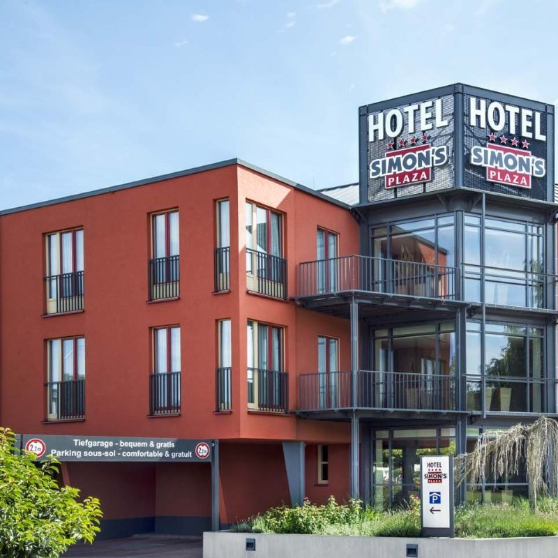 The hotel Simons Plaza in Grevenmacher is a modern, new house most notably characterized by its comfortable equipment. It offers several premises for events and meetings. Every room is equipped with the latest multimedia techniques. Guests can enjoy the in-house restaurant and a bar with their special ambiance and hospitality.