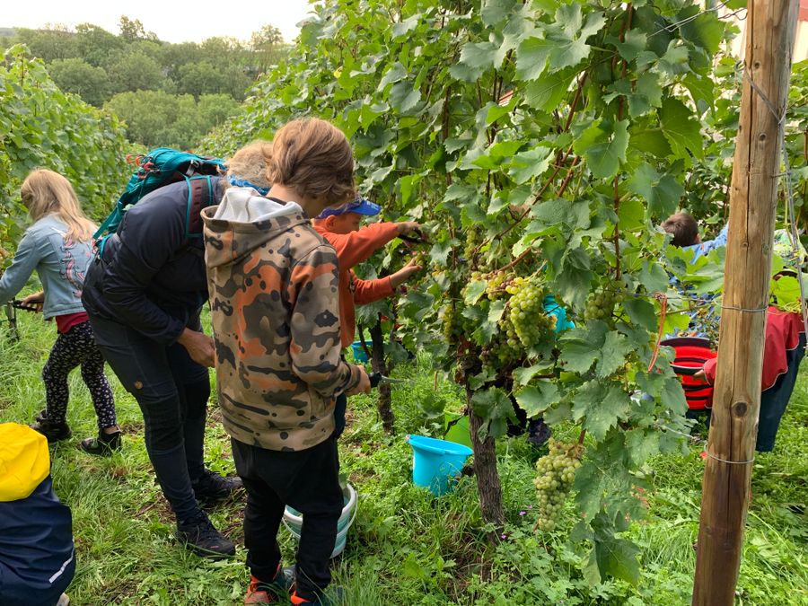 "Kättche, Kättche, bréng mer nach ë Pättchen, vun der Musel a soss keen...". You may already have heard this typical Luxembourgish mosellan song and asked yourselves how this "Pättchen", which means wine, is actually produced or even tastes? Unfortunately, you are still a bit deprived of this experience, but don't worry, the most important thing for making wine is of course the grape, with which you can produce a wonderfully refreshing grape juice and which is even a treat for the smallest of you.So off to the vineyard you go! Under expert guidance, you'll be allowed to get hands-on with the grape shears adapted for children and produce your own grape juice, which you can taste immediately.