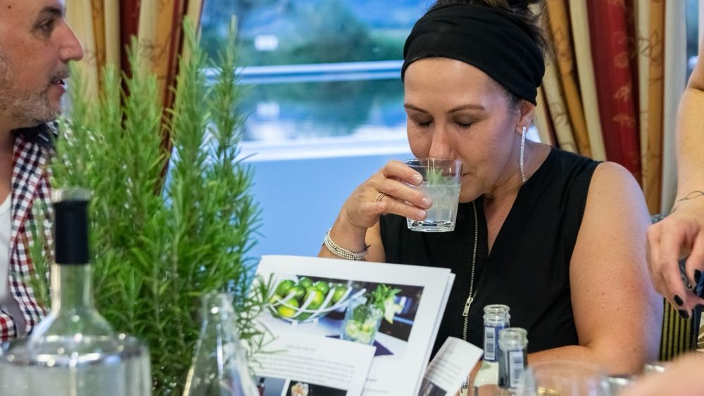 During the cruise, Stephan Thomé from the Euelsberger Distillery presents his own handcrafted gins. You will taste six different gins at your table. Ice cubes, tonic water, as well as fresh and dried botanicals are provided for mixing and experimenting.