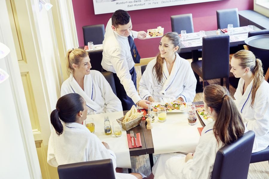 De sfeer van de oude thermen van het Domaine Thermal geeft een extra tintje aan de charme van deze brasserie, waar de bediening altijd zeer gastvrij is tot op het terras, ideaal om even uit te rusten onder de eeuwenoude lindeboom. Voordat u het thermale park gaat ontdekken, moet u zeker een van de heerlijke taarten proberen. Het eten wordt de hele dag door geserveerd.