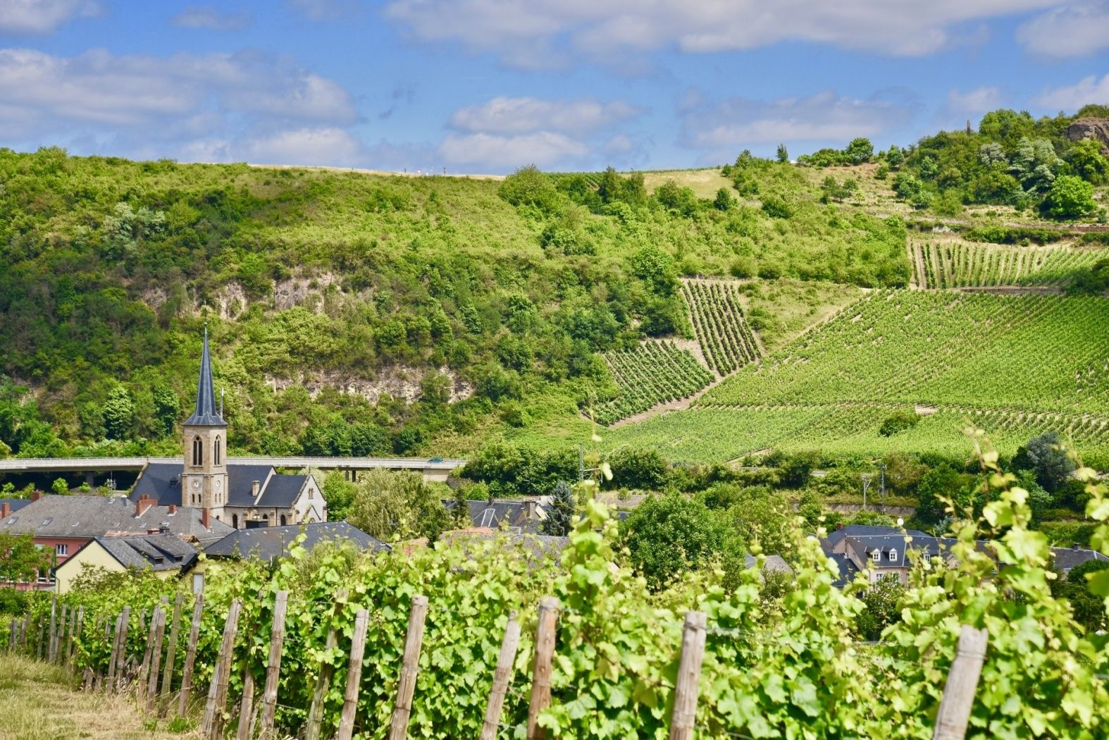 From the starting point in the center of Machtum, the trail leads past a number of beautiful winegrowers' houses towards the Haangeberg. From the viewpoint you can enjoy the wonderful panorama over the Moselle loop and the following national villages: Machtum, Grevenmacher and Mertert. Moreover you can enjoy a view to Germany and its villages Nittel, Wellen and Temmels. Equally remarkable are the steep rock formations on both sides of the river. The path continues over the hill with further beautiful views of the Moselle landscape, over the Grevenmacher woods to the radio towers in Junglinster and finally back down to Machtum.