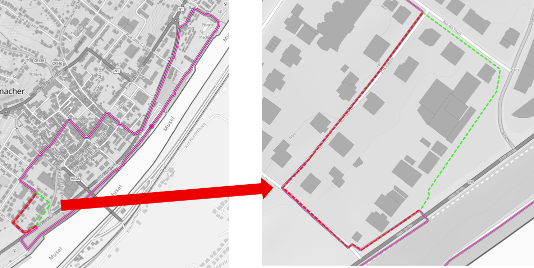 This circular hiking route first takes you about 800 meters along the beautiful Moselle promenade and then leads into a residential area outside the fortress wall. Numerous seating options along the promenade invite you to watch the lively activity on and along the Moselle. Grevenmacher is also known for its pedestrian zone with a large selection of shops and restaurants. Not to forget the leisure offerings: they range from a modern outdoor swimming pool, the Kulturhuef museums and the cinema, to an attractive butterfly garden, and an impressive playground with a sports field along the Moselle - definitely something for young and old!